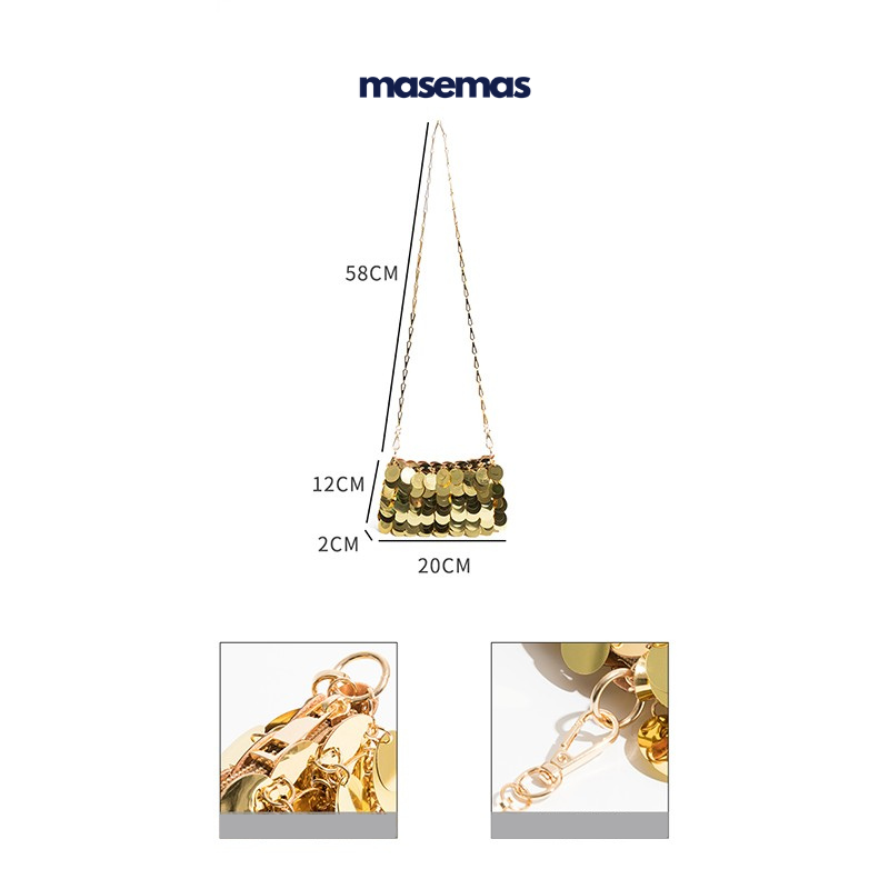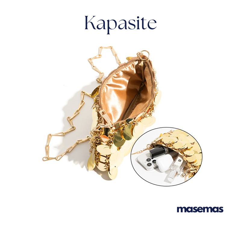 masemas Altın Gümüş Parlak Pullu Çanta